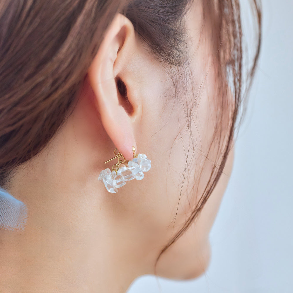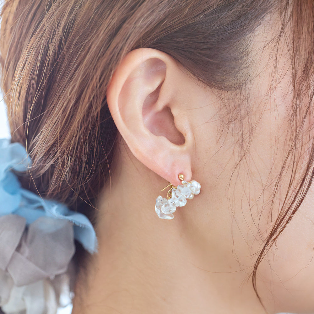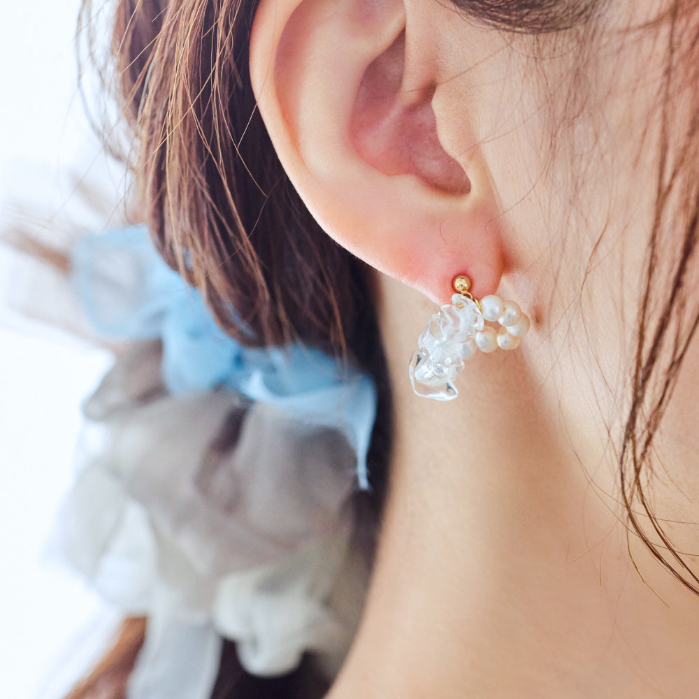 素材 クリスタル、淡水パール、18kgp(ピアス)、樹脂(イヤリング)