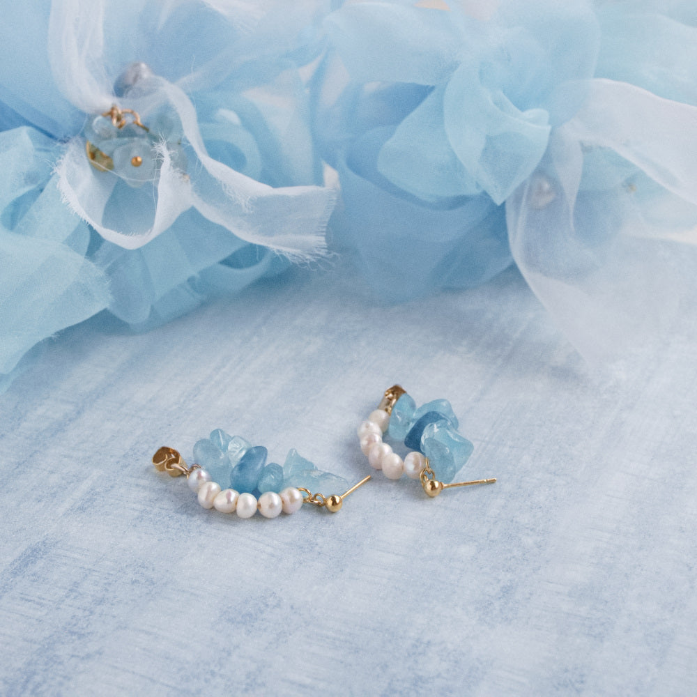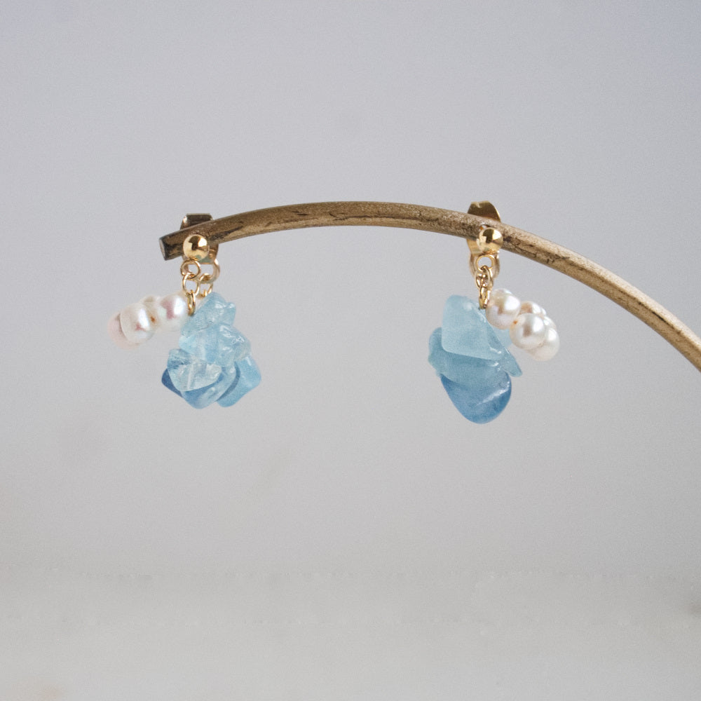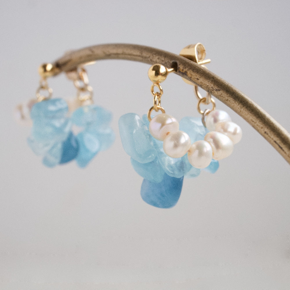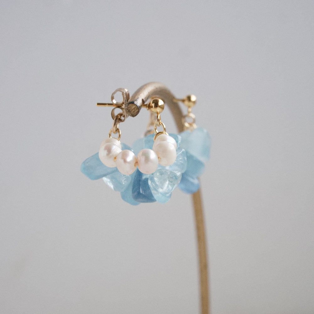 耳を縁どるように彩る天然石と天然パールの耳飾りです。