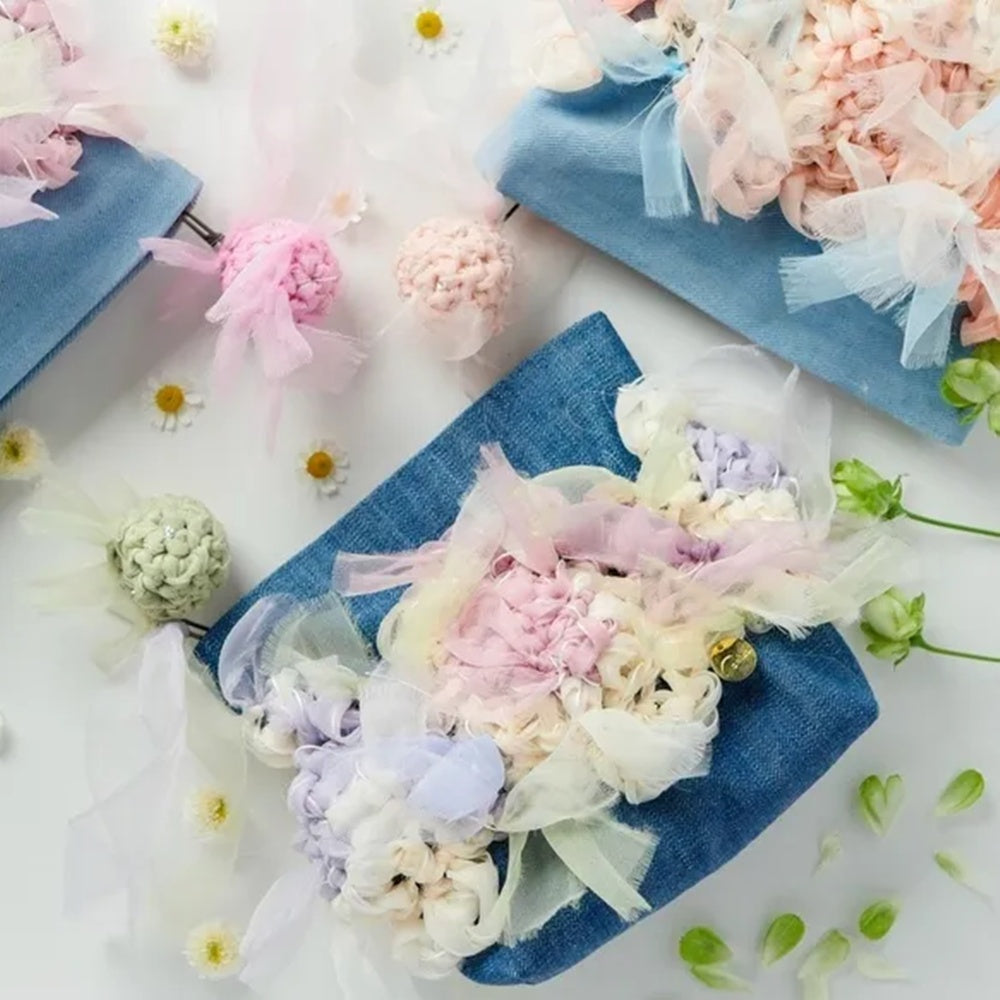 咲き編みシュシュは、自然の中でふーっと息がぬけるような、そんな感覚を日常に持ち込みたくて