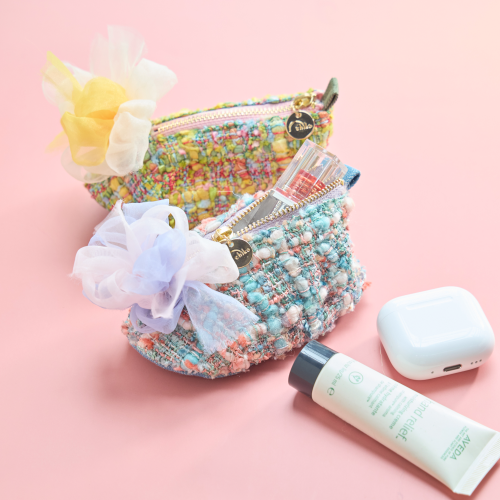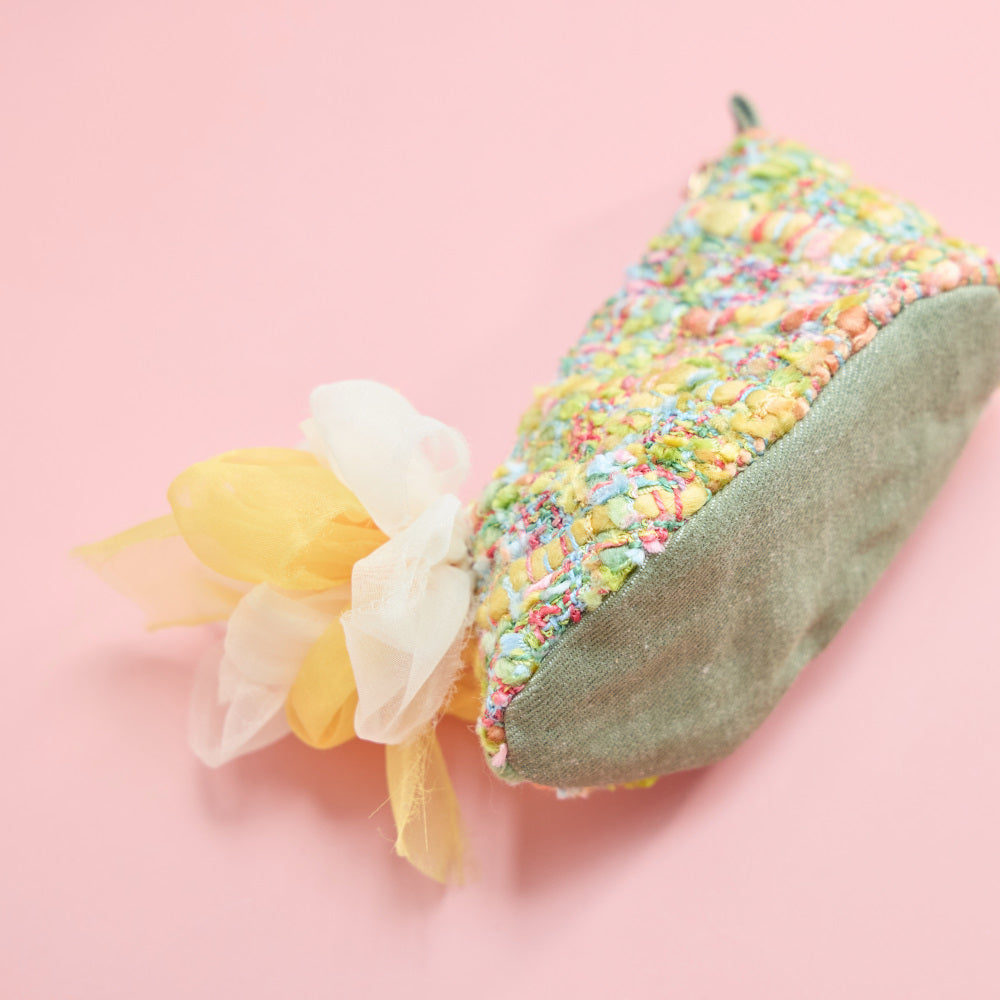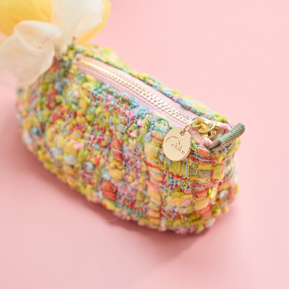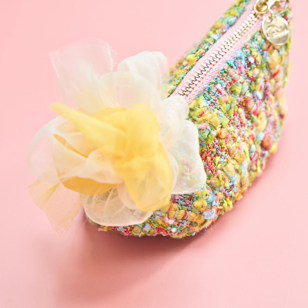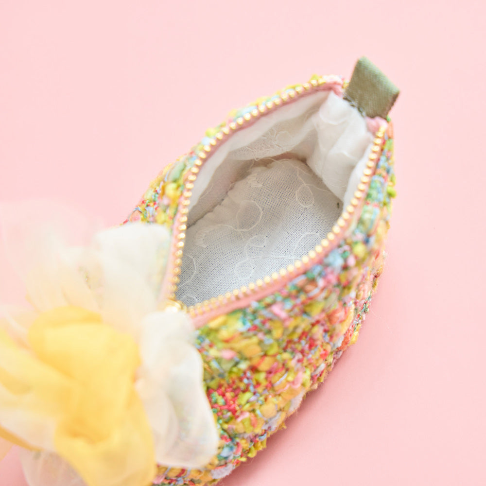 遊び心と気品をのせた、シューズスタイルのツイードポーチです。