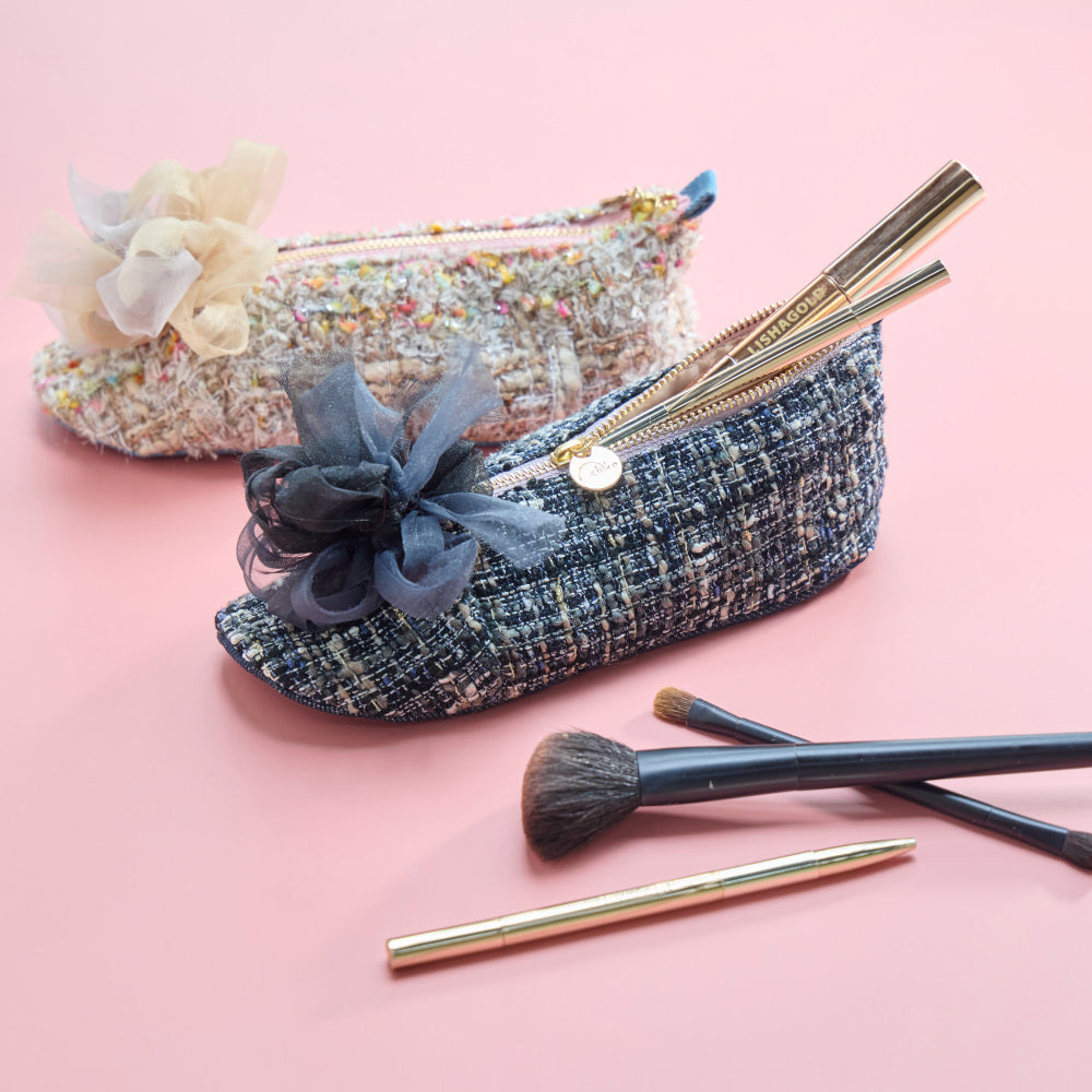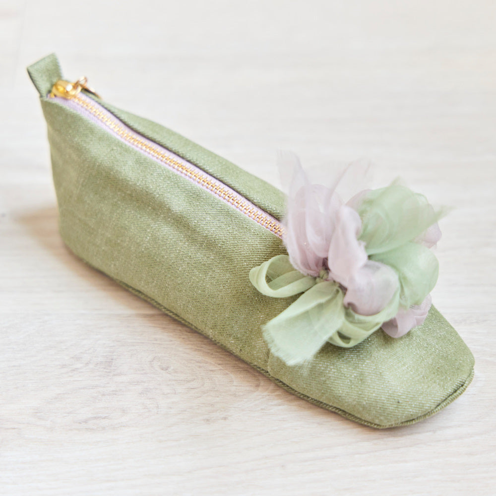 遊び心と気品をのせた、シューズスタイルのデニムポーチです。